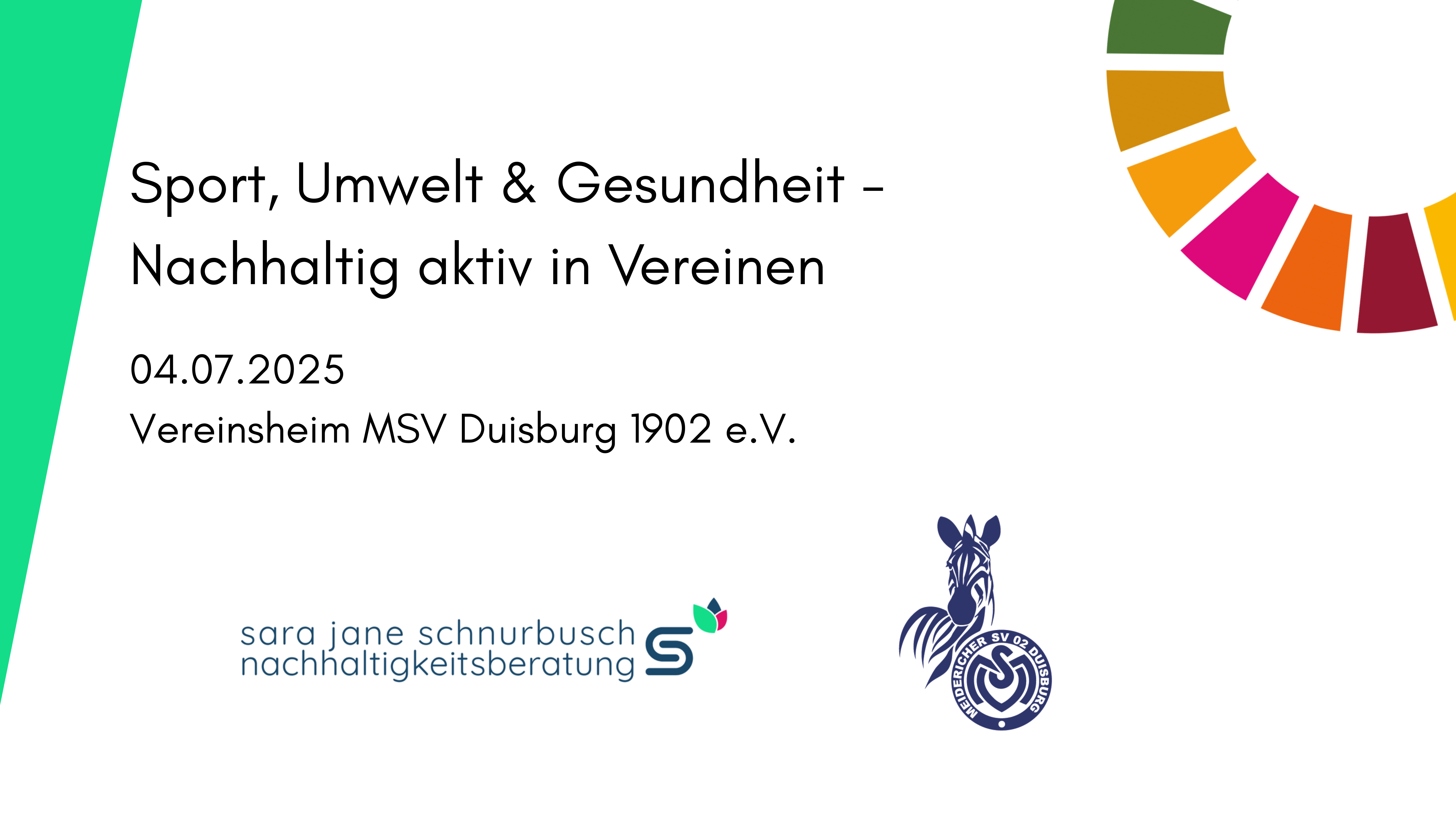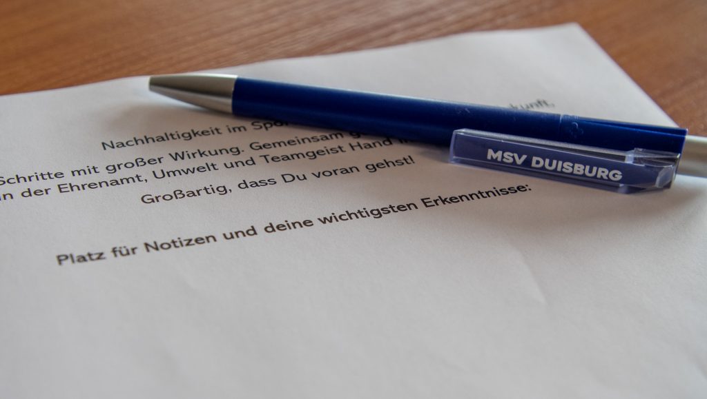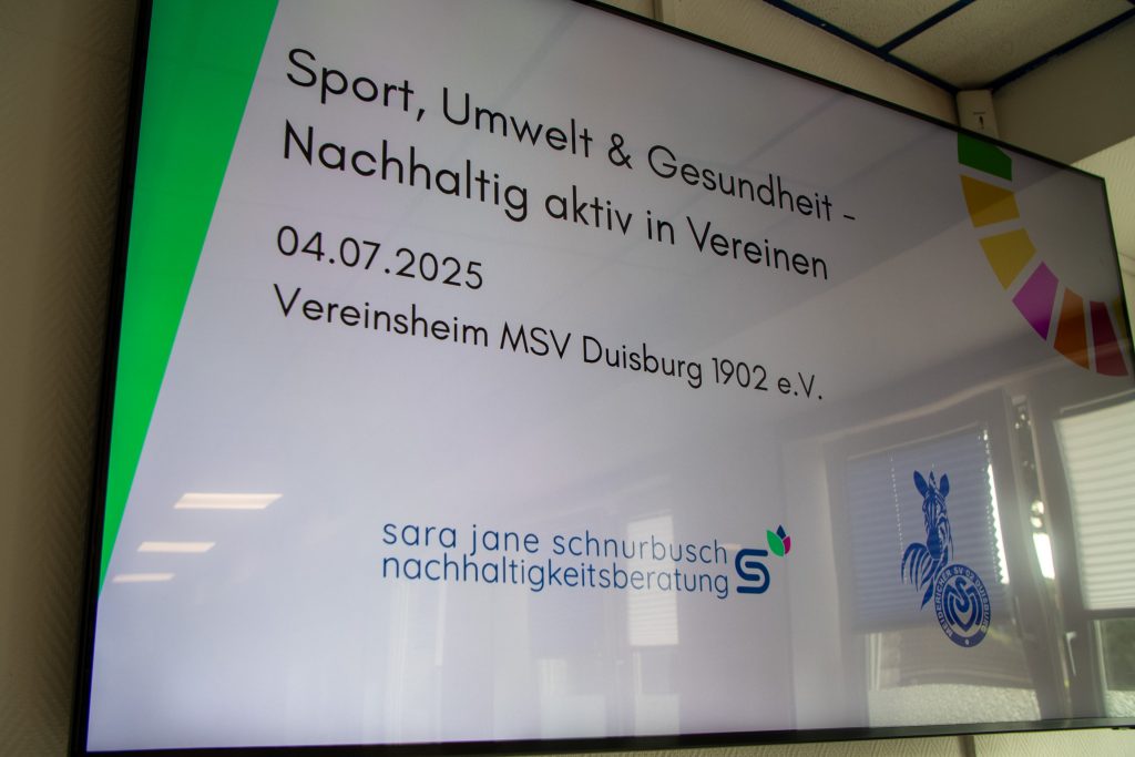 Im Rahmen der Duisburger Umweltwochen lud der MSV Duisburg alle Sportvereine, Trainer*innen, Ehrenamtlichen und Sportbegeisterten zu einem interaktiven Workshop ein! Gemeinsam lernten wir Nachhaltigkeit kennen und entwickelten praktische Lösungen, um Sport nachhaltiger zu gestalten, die Umwelt zu schützen und gleichzeitig die Gesundheit zu fördern.